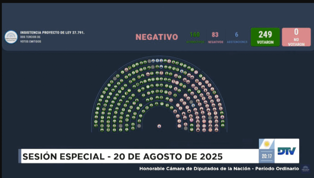 El oficialismo se impuso en la votación gracias al cambio de actitud de algunos legisladores de la oposición respecto de la media sanción aprobada en junio pasado. La presión de la Casa Rosada fue incesante. En aquella primera oportunidad el bloque libertario había obtenido 67 votos; esta noche sumó 16 voluntades más para sostener el veto.