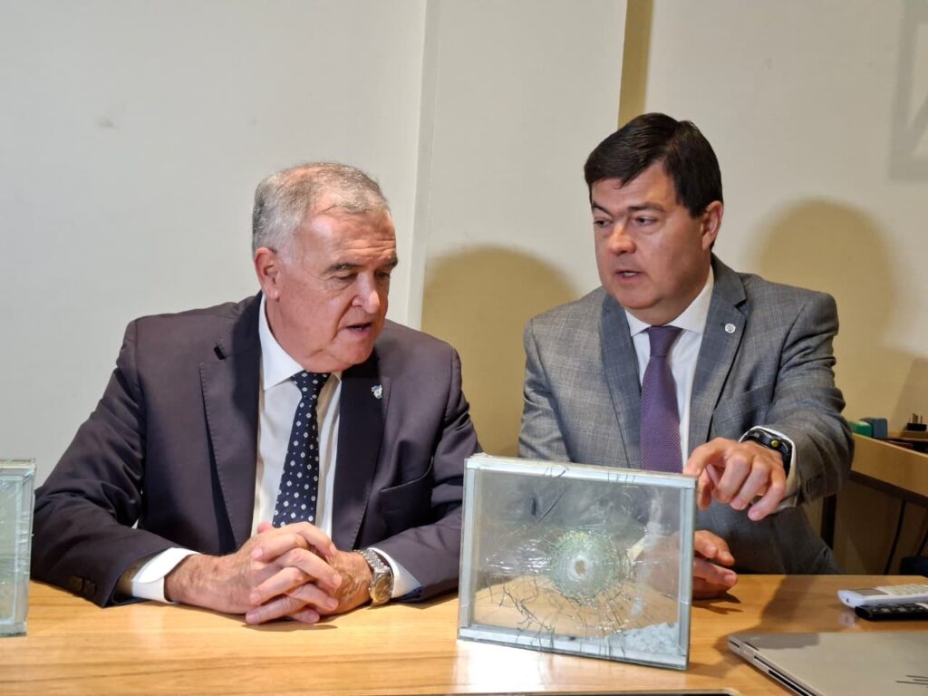 El gobernador y el ministro de Seguridad visitaron la planta donde se construyen las cabinas blindadas que serán instaladas en puntos estratégicos de la provincia.