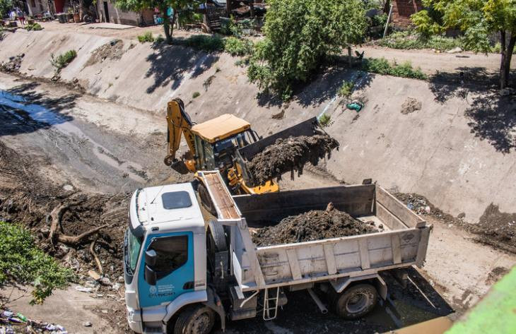 El Ministerio de Obras, Infraestructura y Transporte Público trabaja en el saneamiento del cauce para optimizar el escurrimiento del agua...