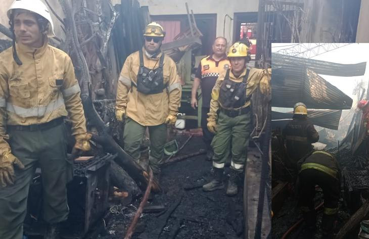 Bomberos de distintas dotaciones trabajaron en conjunto para apagar las llamas provenientes del fondo de la casa de una familia...