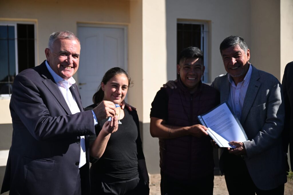 El gobernador Osvaldo Jaldo visitó la ciudad de Tafí del Valle, este martes, donde encabezó la entrega oficial de siete viviendas construidas a través del programa PROMAT, en una acción articulada entre el Instituto Provincial de Vivienda y Desarrollo Urbano (IPVyDU) y el Municipio local.