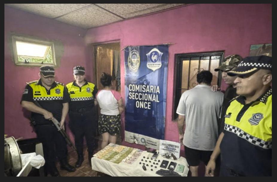 En el marco de un allanamiento realizado este martes en el Barrio Villa 9 de Julio por una causa de amenazas agravadas, los efectivos de la Comisaría Once secuestraron un arma de fuego y estupefacientes en la vivienda de los acusados, quienes cuentan con antecedentes policiales y judiciales.