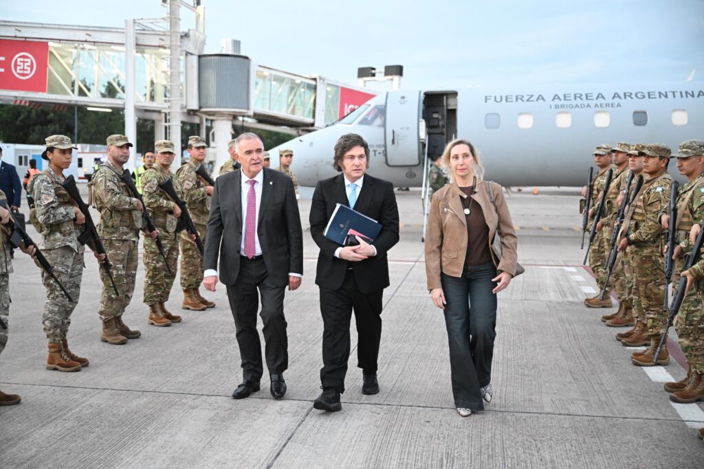 Jaldo estuvo acompañado por el vicegobernador, Miguel Acevedo, mientras que el Presidente llegó acompañado por su hermana Karina Milei, secretaria General de la Presidencia.