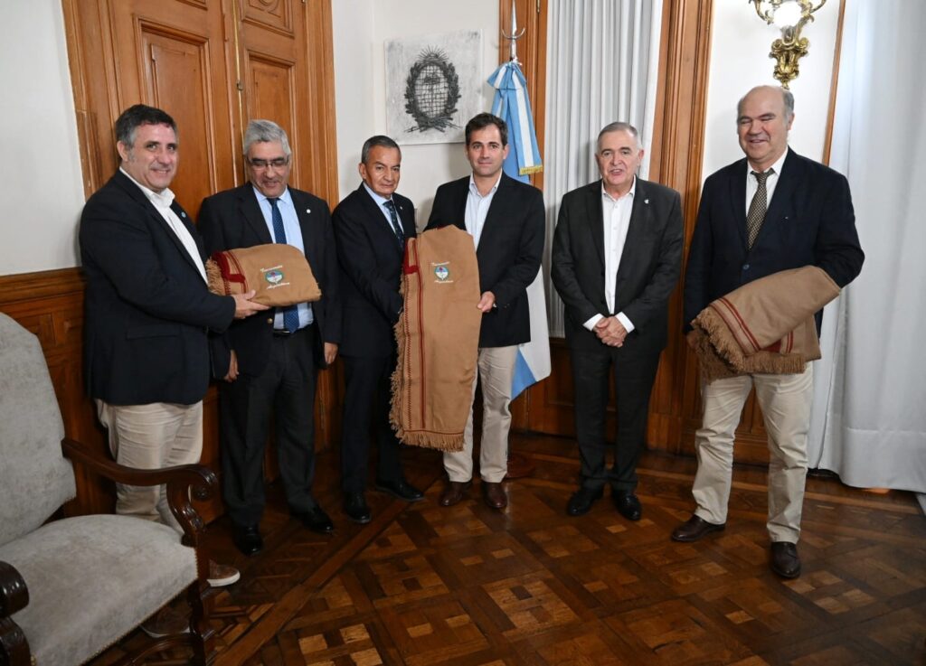 El gobernador Osvaldo Jaldo recibió en su despacho de la Casa de Gobierno al secretario de Agricultura, Ganadería y Pesca de la Nación, Sergio Iraeta, junto al subsecretario de Producción Agropecuaria y Forestal, Manuel Chiappe, y al subsecretario de Economías Regionales y Pequeños y Medianos Productores, Martín Giaccio. Participaron también el ministro de Economía y Producción de la Provincia, Daniel Abad, y el secretario de Producción, Eduardo Castro.
