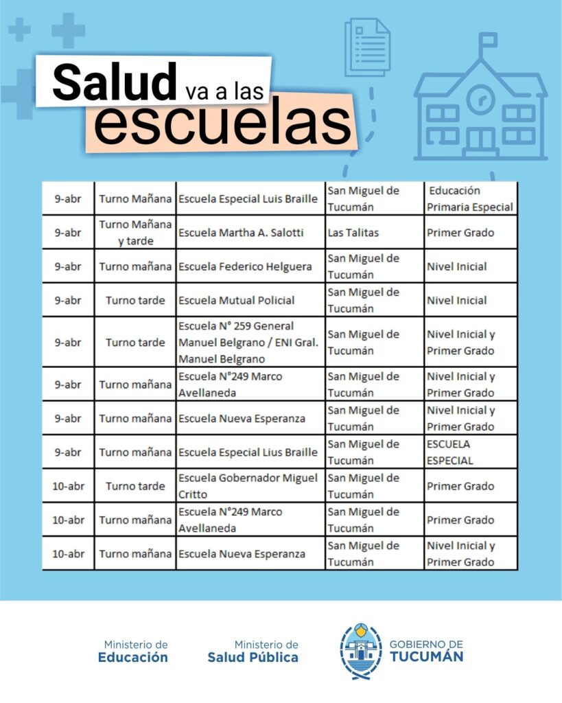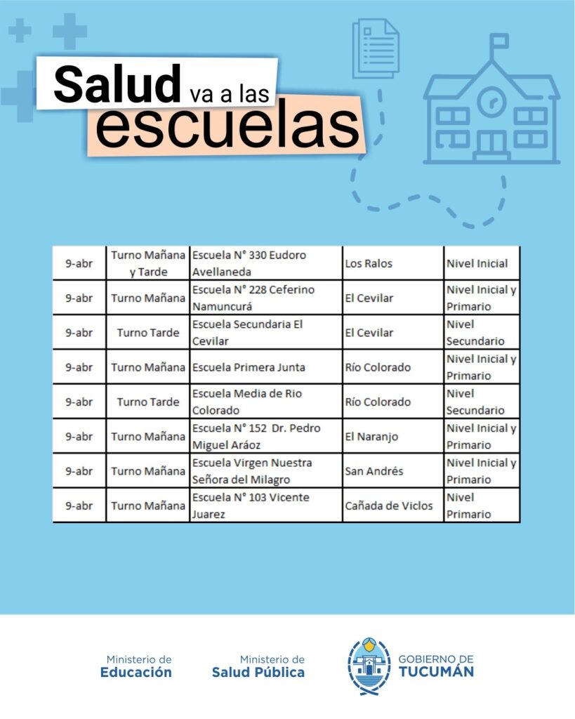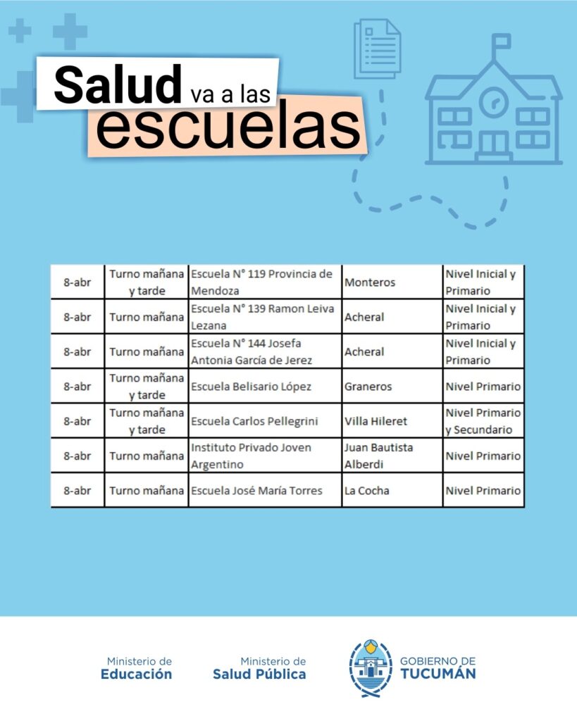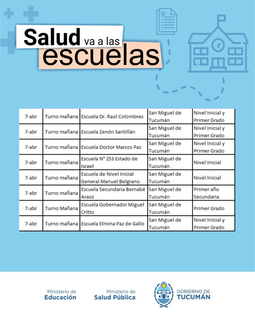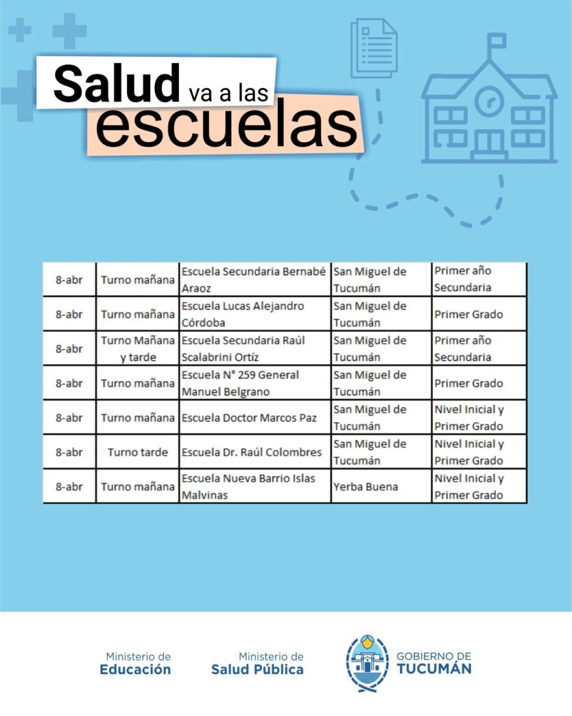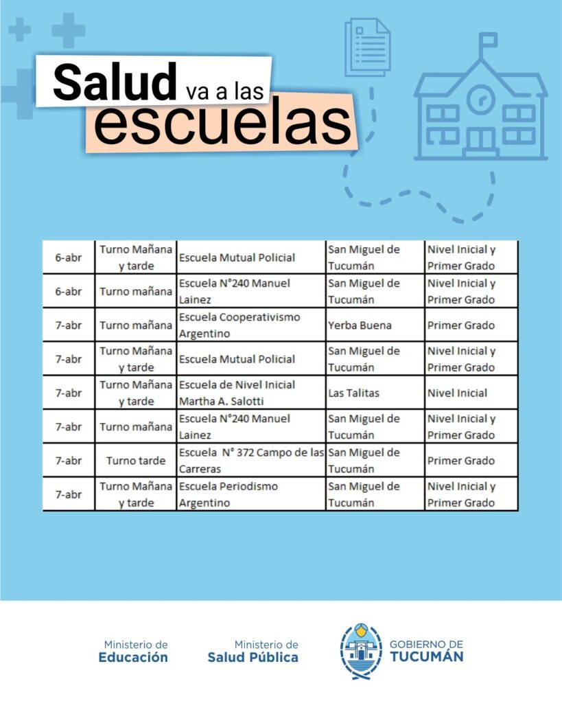 El operativo es organizado de manera conjunta entre el Ministerio de Salud y el Ministerio de Educación, y recorrerá todas las escuelas públicas tanto de la Capital como del Interior de la provincia