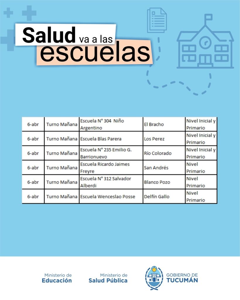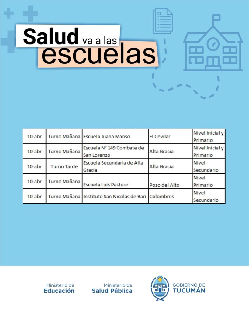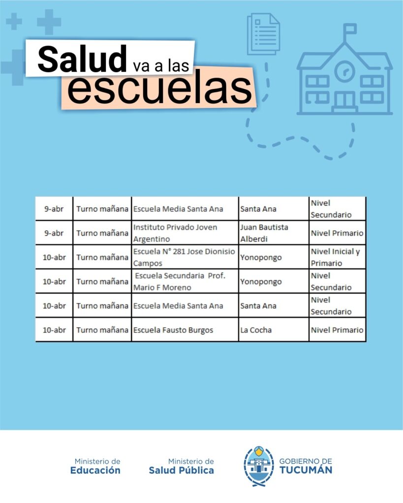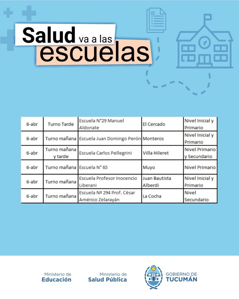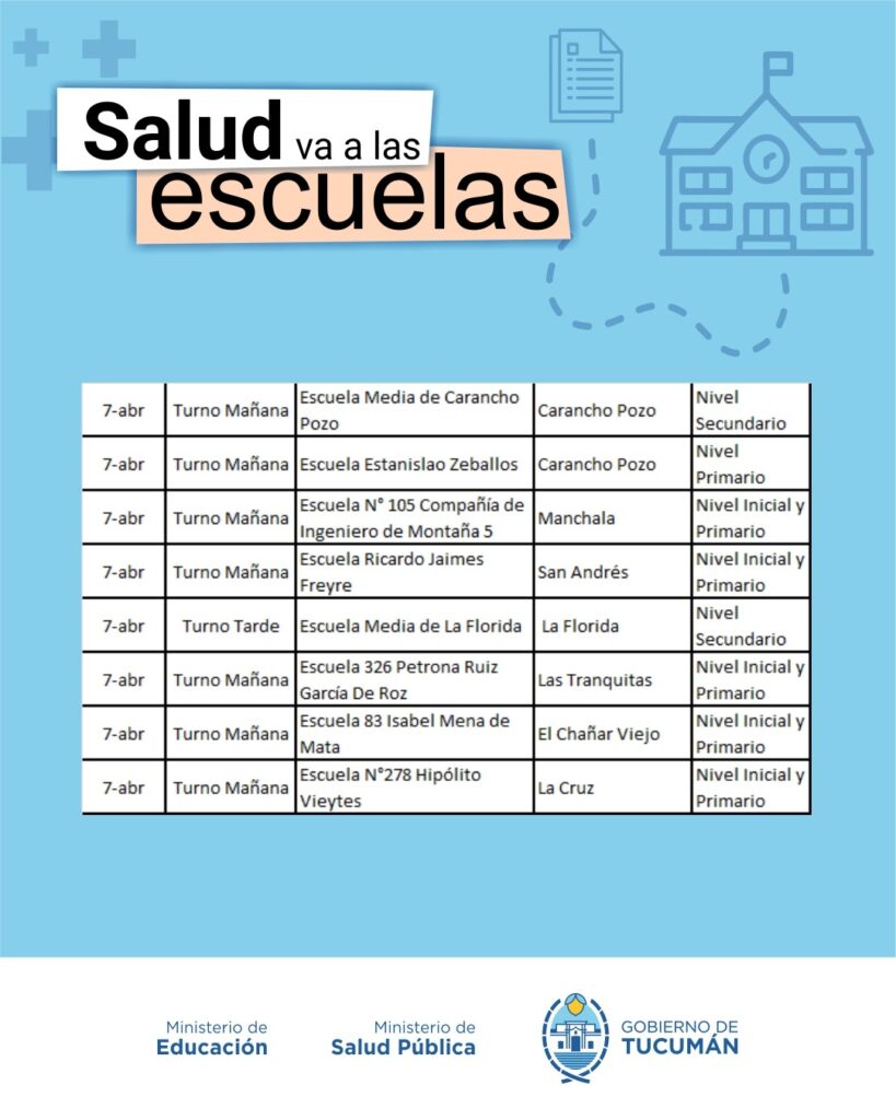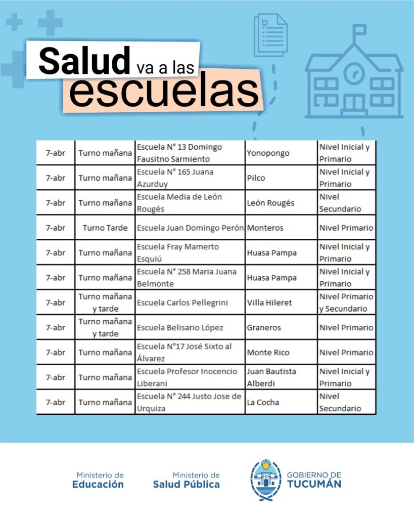 El operativo es organizado de manera conjunta entre el Ministerio de Salud y el Ministerio de Educación, y recorrerá todas las escuelas públicas tanto de la Capital como del Interior de la provincia