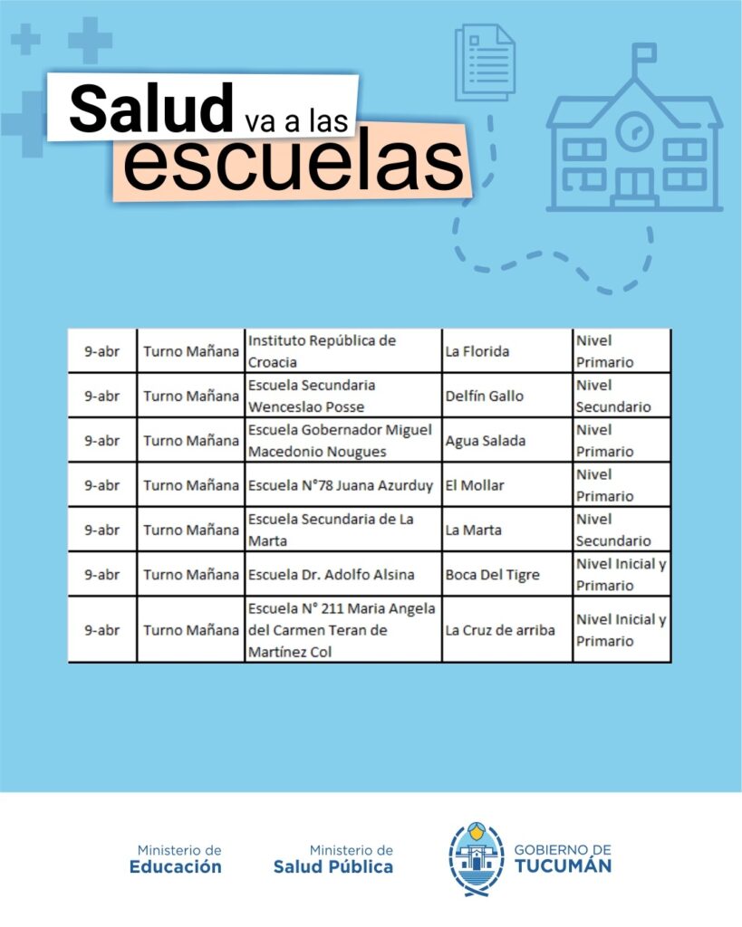 El operativo es organizado de manera conjunta entre el Ministerio de Salud y el Ministerio de Educación, y recorrerá todas las escuelas públicas tanto de la Capital como del Interior de la provincia.