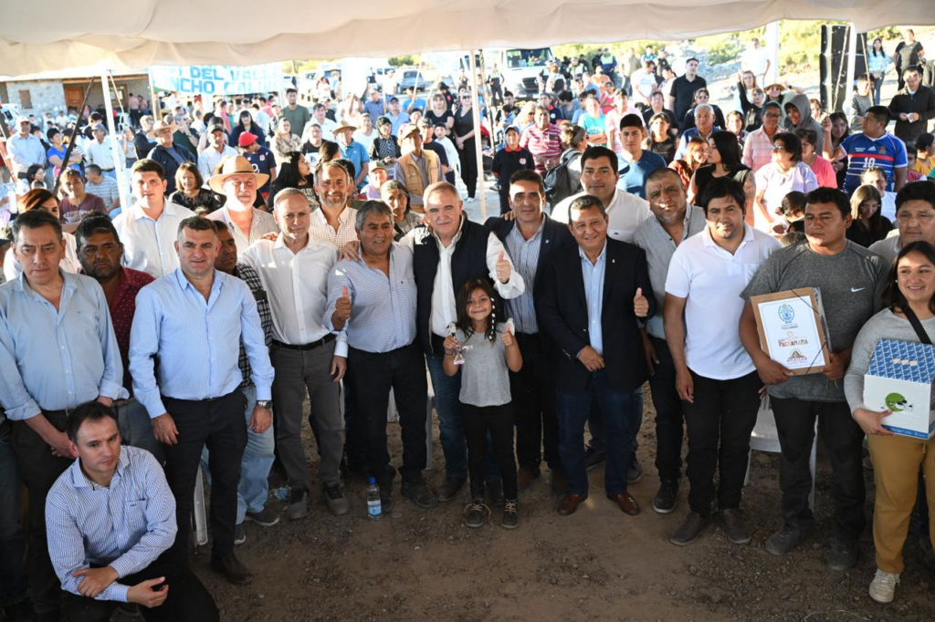El gobernador Osvaldo Jaldo encabezó hoy la entrega de 24 viviendas en el barrio “Pachamama”, en la localidad de Amaicha del Valle. La obra fue ejecutada a través del Subprograma Habitar Comunidad, una iniciativa que busca mejorar la calidad de vida mediante la construcción y ampliación de viviendas en territorios con características sociales y geográficas particulares.