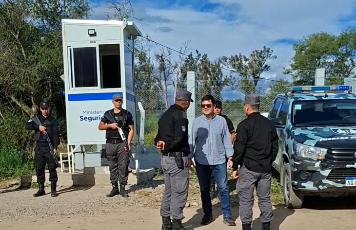 El ministro de Seguridad, Eugenio Agüero Gamboa junto al secretario de Seguridad, Gustavo Vizcarra; el jefe y subjefe de Policía,...